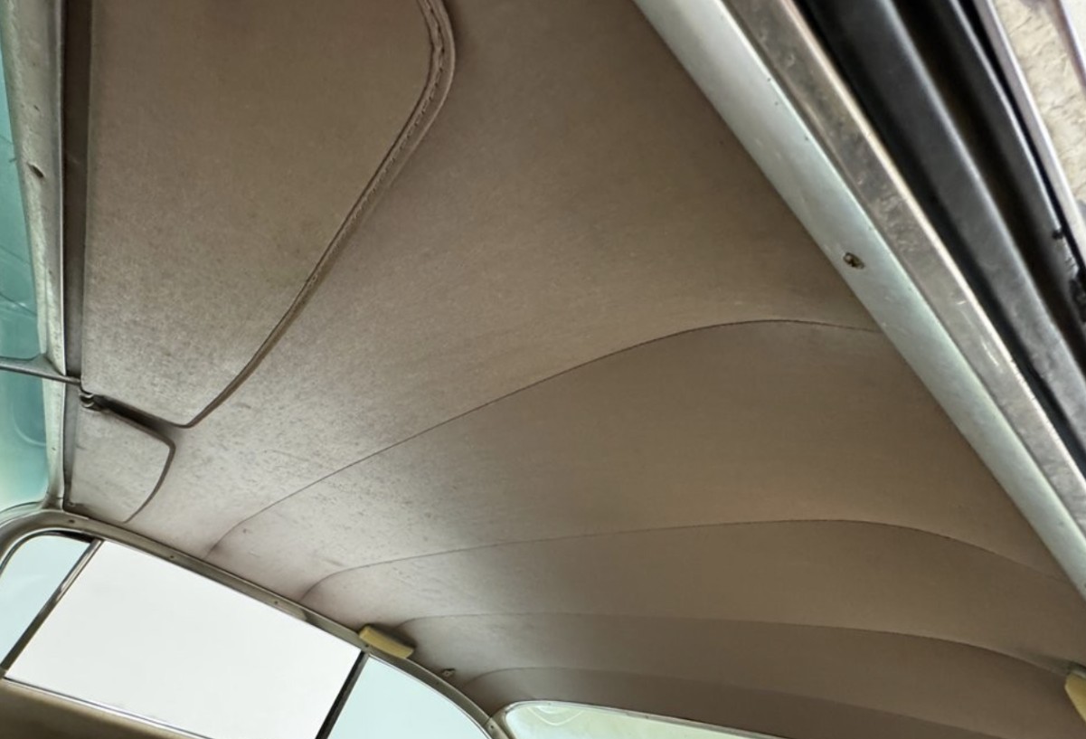 Cadillac offered a lush selection of exterior and interior colors. This paint is Wood Rose Metallic, and the upholstery is Rose Coronado Metallic Cloth trimmed with Rose Metallic Leather. Oddly enough, given this car’s nasty exterior, its headliner is nearly perfect. Luxury touches include a vanity mirror, two-speed wipers. and a six-way power seat. The driver’s side door panel is currently in the trunk, which is devoid of trim or carpet.