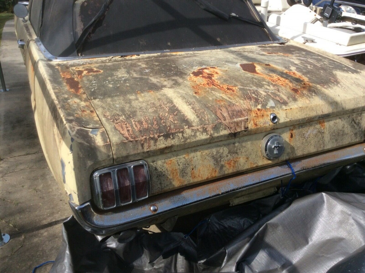 This ’66 drop top looks to be mostly complete, but in rough condition given that it likely has been exposed to the elements in Florida for some time. There is evidence of rust, although the worst of it may be below and out of sight. At a minimum, the car will need floor pans and patches in a few places, including the frame rail directly under the battery tray (leaking battery acid, no doubt). The doors are said to open and close easily, which suggests no major structural issues. The car is sitting up on jack stands, which was a wise decision in a humid environment like the “Sunshine State.”