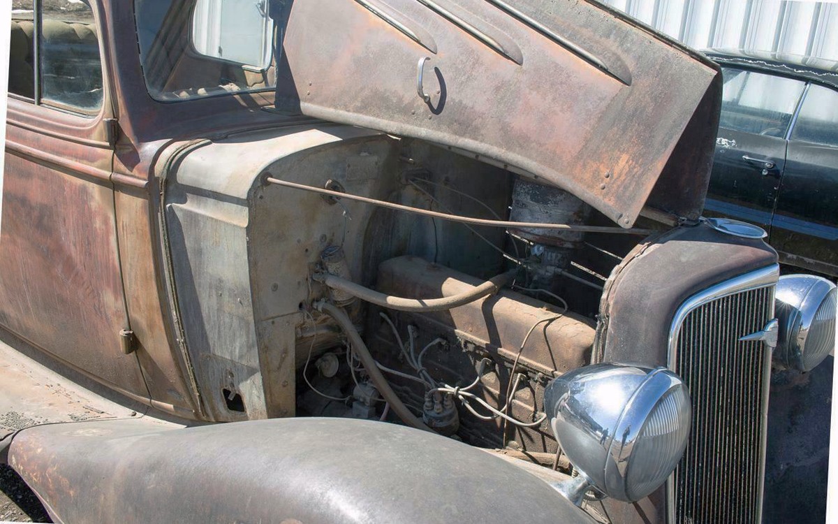 They’re selling this car for a friend of 50+ years and it was put into storage in 1971. The 206 cubic-inch inline-six with 80 hp was running when it was put into storage, but 48 years is a long time so it’ll have to be totally gone through. It’ll run again, a vehicle doesn’t know if it’s been sitting for six months or sixty years. All it needs is fuel, air, and spark and it’ll fire off, I’m pretty sure. It turns over which is a good thing. Have any of you owned or do you currently own a similar car to this ’34 Chevy? And, as always: restore or restomod? (cringing, hoping for more “restore” comments!)