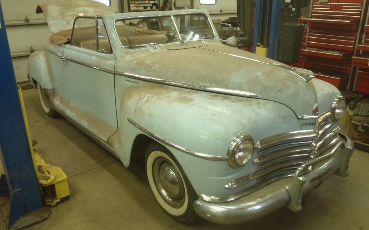 This 1947 Plymouth convertible was apparently stored in an Iowa barn since 1971 and was stored before that beginning in the early 1960s! There’s no information in the ad regarding why it may have been in storage for so long, but the dust doesn’t lie. It can be found here on Craigslist with an asking price of $12,000. Located in Mount Union, Iowa, the car looks like a very complete project. The trim appears to be present and in great condition. Parts like the top and upholstery will probably need to be addressed, but overall, this one can be saved. Take a look.