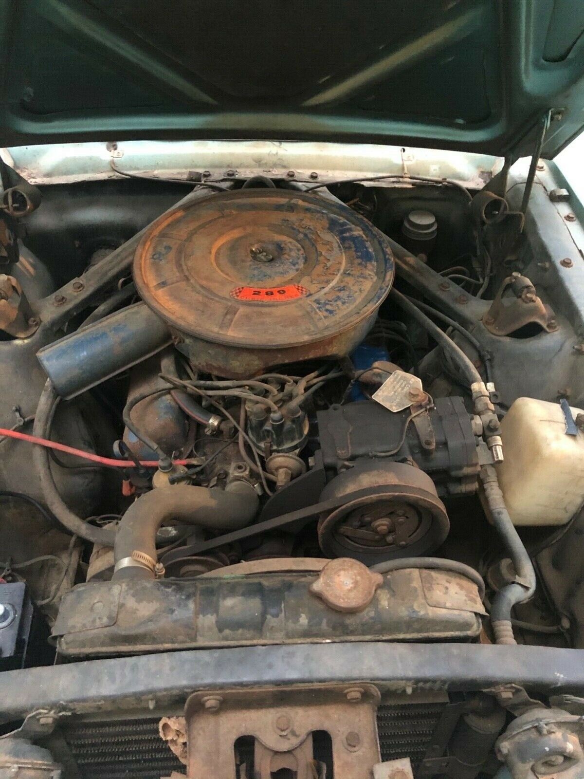 The seller did some minor service to try to get it running. If you pour gas down the carb, you’ll get a response, but it’s not pulling from the fuel system. We’re told that maybe it needs a new tank, but it could just require cleaning out along with the carb and fuel lines. There’s fresh oil in the crankcase and a new battery under the hood. At 116,000 miles, there’s really no telling what will need to be done overall. The 289 V-8 is the 2-barrel variety that was good for 200 hp.