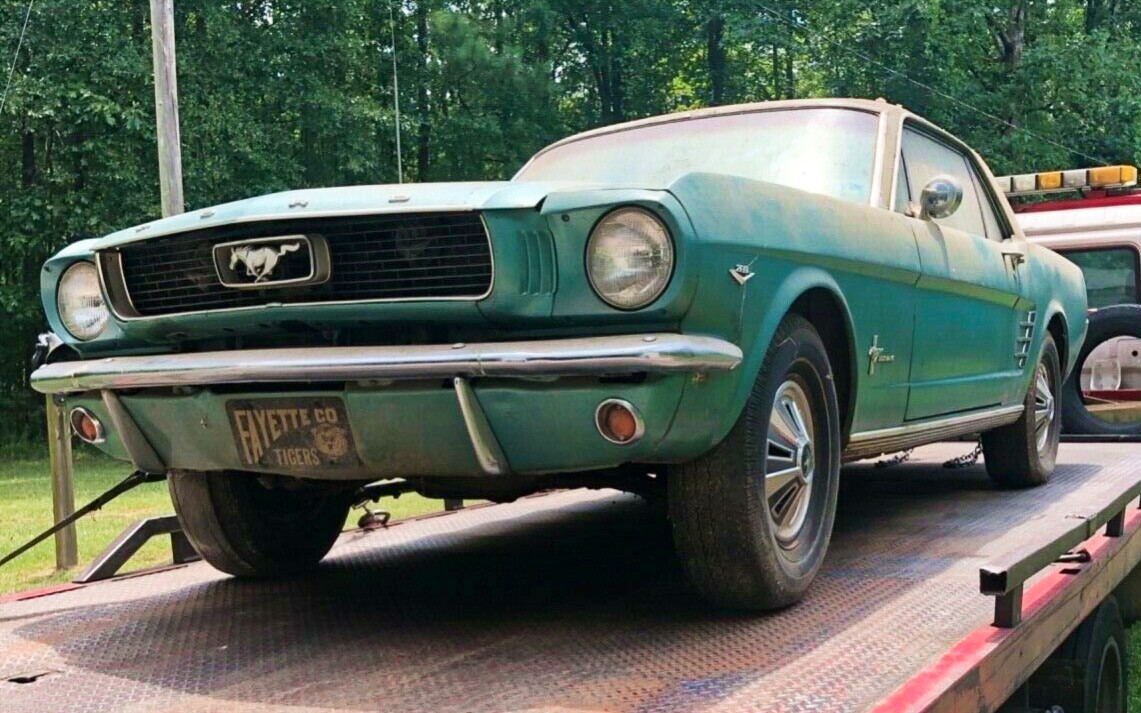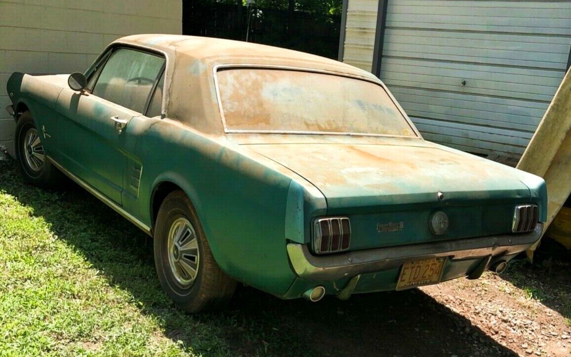 Beginning in 1964, Ford dealers were having a field day showing the new Mustang to prospective buyers. The first year-and-a-half of sales topped a half-million units, but they were just getting started. 1966 would see more than 600,000 ‘Stangs built, some 422,000 of them being two-door coupes like the seller’s. I owned a ’66 Mustang when I was a teen, but it was a six-cylinder that did me little good at the Saturday night drive-in. We don’t know how the seller came about the car, but he apparently obtained it from the original owner or his/her heirs after being in hibernation in a garage for more than four decades. (Source: MaineMustang)