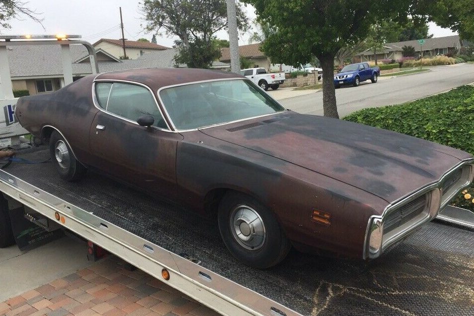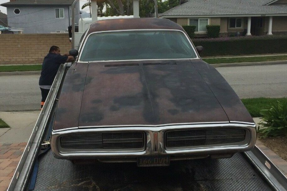 At first glance, I initially thought that the Charger started life finished in Burgundy, with a vinyl canopy top. However, I then realized that this was primer and a guide coat, and a peek under the hood indicates that the Charger rolled off the line finished in the awesome Plum Crazy, which is a terrific color. It isn’t clear what color the top would have been, but a quick check of the tags should answer that question. Given the interior trim color, I wouldn’t be surprised if it was a black top. The information and photos are a bit inconclusive, but what can be seen tends to indicate that rust issues may be negligible. The car looks to also be complete, and external items such as the bumpers, trim, and grille look like they are also in good condition.