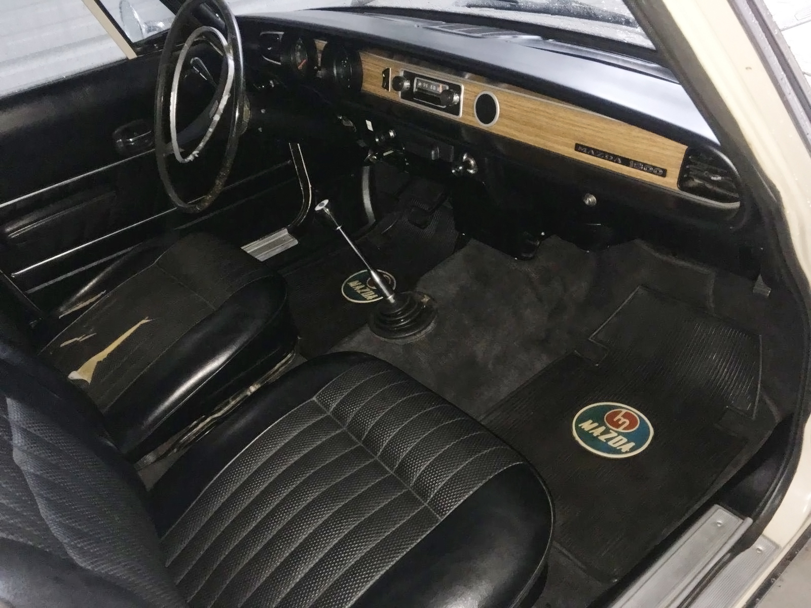 As you can see from the first two photos, this car appears to be in great condition. And, as you can see from this photo, the seller is a Mazda fanatic. There’s always a screeching stop when I see a 1972 1800 wagon, or Luce as they were known in Japan. From our research and on previous postings of 1972 Luce/1800 wagons, exactly zero of them were produced in 1972. So, either this is yet another 1971 that was sold in 1972 or something else is going on. Whatever year it is, the seller says that it “is perhaps the cleanest stock example of an 1800 estate wagon in the usa.” I would agree. They mention that the glass is all good but that ideally the rubber seals should be changed.