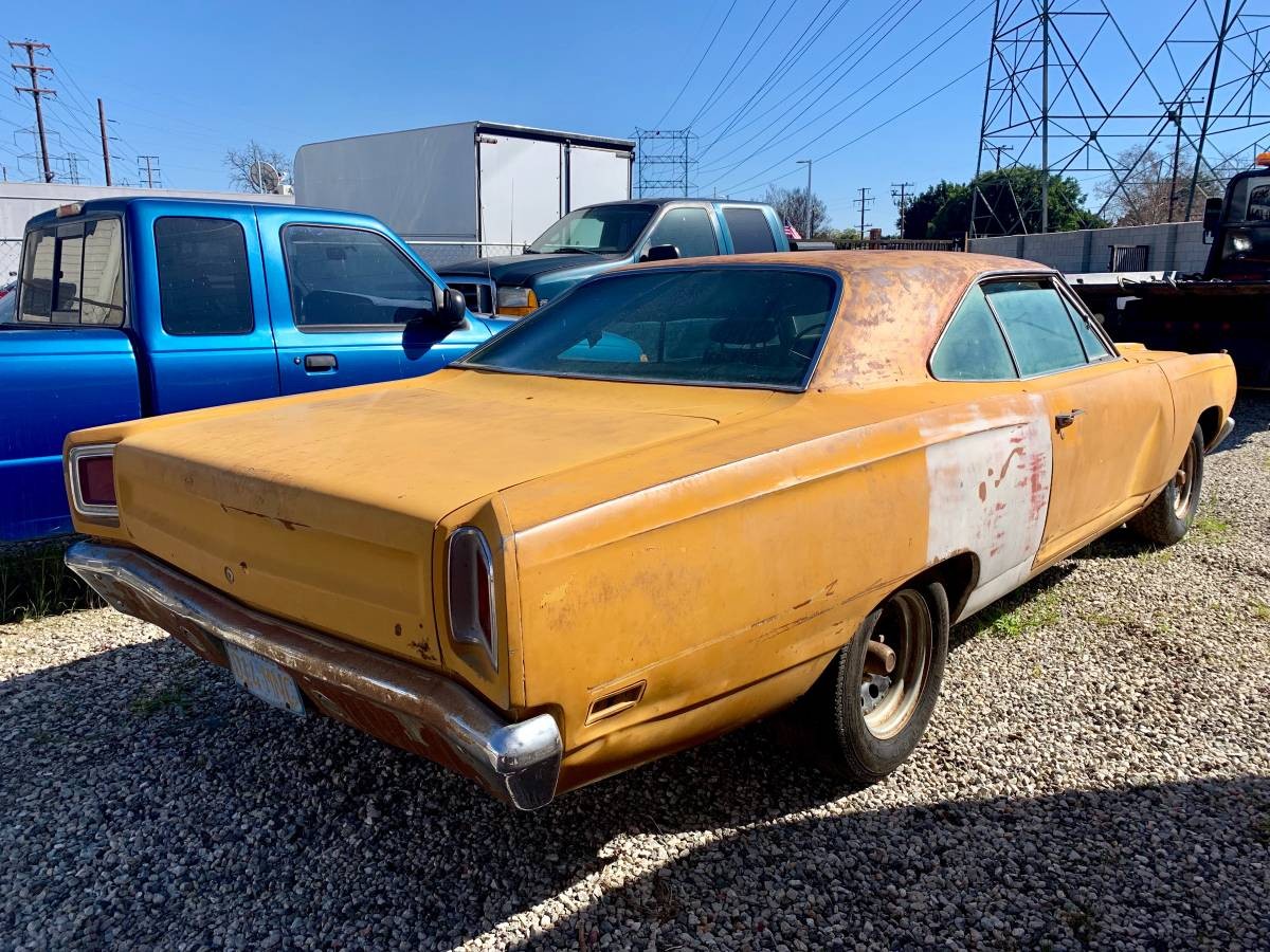 I guess that if a car is going to be placed into storage, then California is not a bad place to do it. The Road Runner seems to have survived the hibernation quite well. Alright, the Bahama Yellow paint is looking pretty crusty and horrible, but the decent catalog of photos supplied by the owner indicate that apart from a smattering of surface corrosion, the Road Runner is absolutely solid. There are a number of minor dings and marks in the body, and there is also some Bondo visible in the front edge of the driver’s side fender, but it all looks very promising for this car.