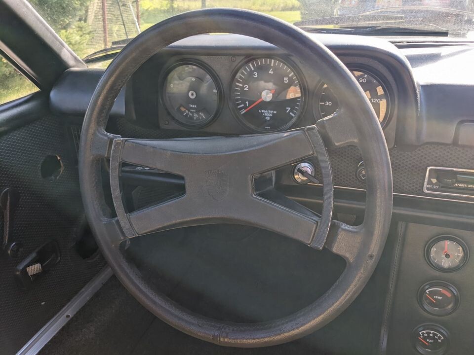 Michigan gives us pause, but the rust doesn’t look bad, and plenty of shops can fix it easily. I think all 2-liter 914s had the gauge package. Since it is black with contrasting upholstery, this may have been one of the “bumblebee” special editions, which were all black with yellow trim. Worth saving.