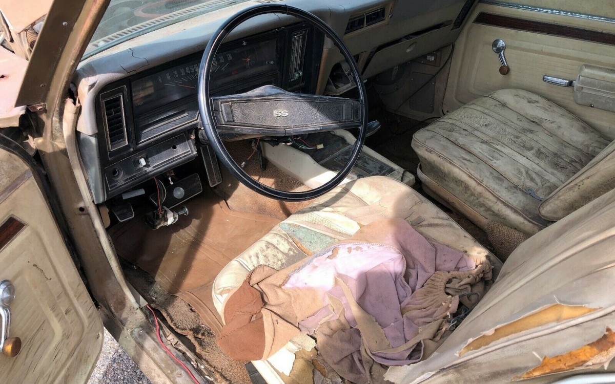 Its an odd SS car , it has optional A/C , but no vinyl roof or side moldings , no chrome wheel arch , door post or rain gutter trim . I’m sure someone took the ralley wheels off and swapped them out for the dog dish caps when they put new tires on it , but without the little chrome extras these cars look so plain IMHO