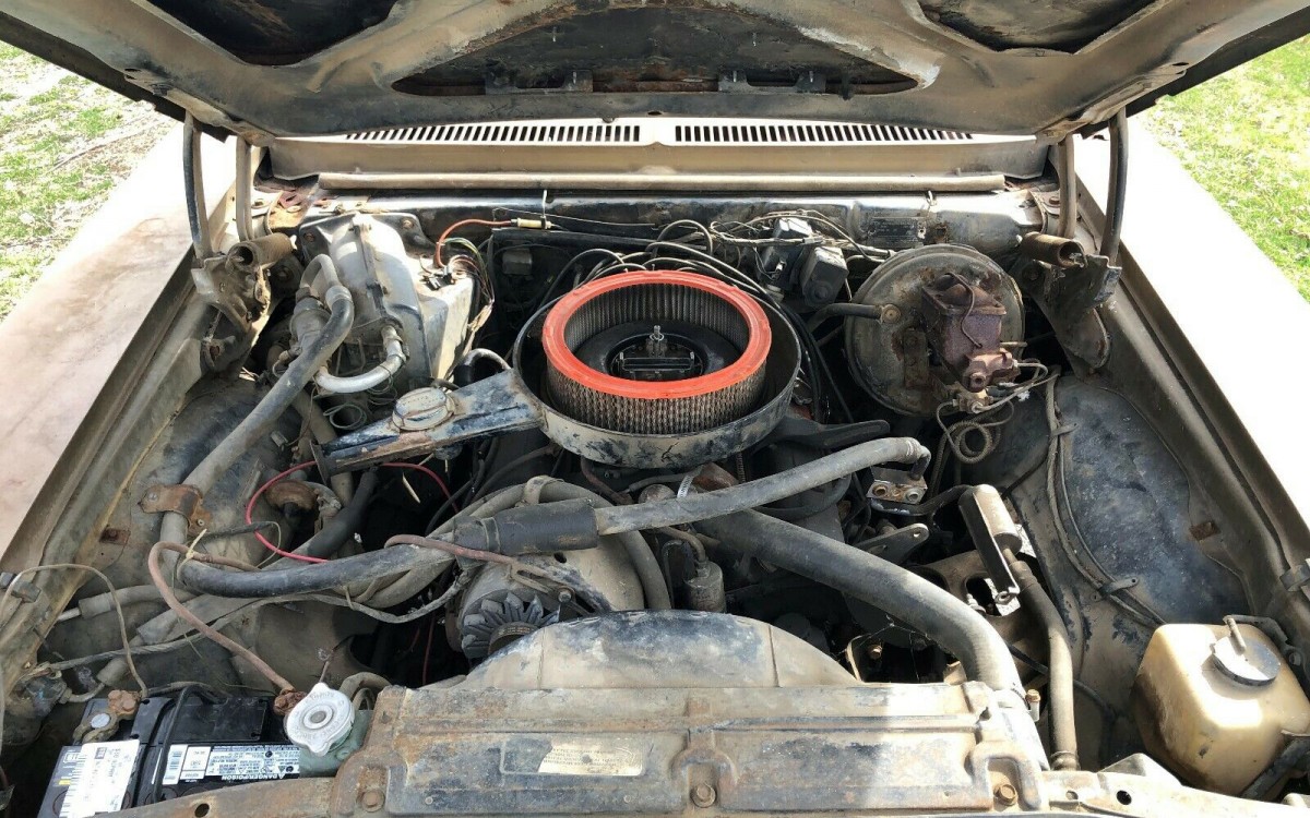 Somebody put a wrinkle in it’s dinkle. Other than that it’s nine years worth of work to beat it into shape. It could have been in a flood or it is from the Gulf Coast. You can pull the 10-bolt cover to find out if it was underwater. Judging from the protective coating of crud on the rear end it looks like it hasn’t seen light of day since 1970. Those bucket seats and the button top floor shifter reminds me of a 1966 Nova SS. The L-48 and ZQ3 both hit the 300 horsepower mark.(Motor Trend https://www.motortrend.com/news/small-block-chevy-v8-through-the-years/). I have no clue about the poverty caps. The interior is doing a great job impersonating a gas station men’s room. The glasspacks scream Oklahoma and the A/C in the trunk… well that screams Oklahoma as well.