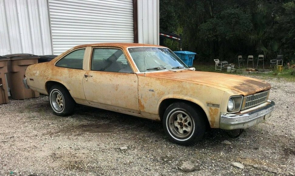 Apparently, the title is cleaner than the car. It’s funny, all you see today are wheel standing Novas, but the truth is, I bet a huge number of Novas were just like this. They were originally touted as an “economy car”, and it didn’t get more “economy” than this. Same old thing, you gonna stick a pile of money ( and knuckles) in this, or just go buy one. This is a POS and wouldn’t spend a dime on it.