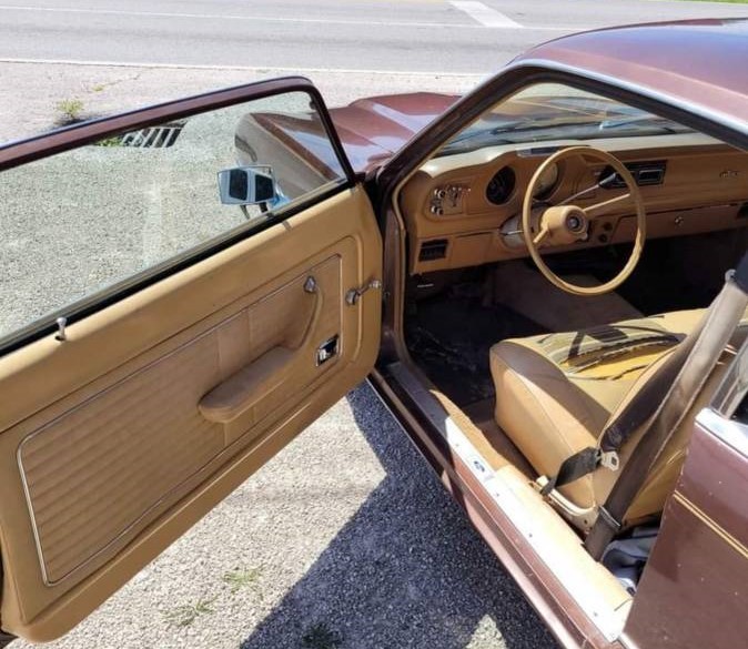This ’76 Maverick looks like a solid runner. It’s said to be original but runs well at 149,000 miles. The car is powered by Ford’s venerable inline-6, a 250 cubic inch motor. The seller just returned from a longer trip on the interstate and the car performed well. Some new parts have been installed to ensure its continued reliability, including muffler (glass pack?), alternator, voltage regulator, coil, ignition module, and radiator. New to the Mavericks that year were front disc brakes (which became standard equipment) and a foot-operated parking brake that replaced the old under-dash T-handle ones.