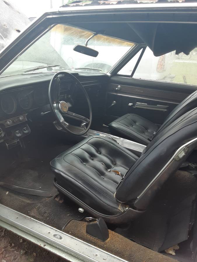 There’s not much good left of the silver paint and black vinyl roof. A lot of mildew looks to be present on the back half of the car, so a thorough detailing will be needed just to see how many issues there are. The seller admits that rust is present but calls it fixable. There’s a big chunk of it in one of the doors and the hood has several pockmarks on it. The interior looks surprisingly good with the optional bucket seats and console. But the headliner is falling so that will have to be replaced. If this car didn’t have a 396 V8, would it be overlooked for restoration?