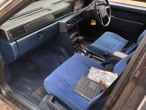 Being a bit of a fanatic for Euro cars, the first thing I noticed is the European-market spec headlights complete with headlight washer arms. The upright Volvo profile is maintained if not enhanced with the elongated middle section. Wheels are standard-issue Volvo, clearly not built in the bling-bling era where even one of these cars would have 22″ chromies bolted on. The seller notes some minor rust on the roof and a cut in the fender, with the reason unknown for the missing metal.
