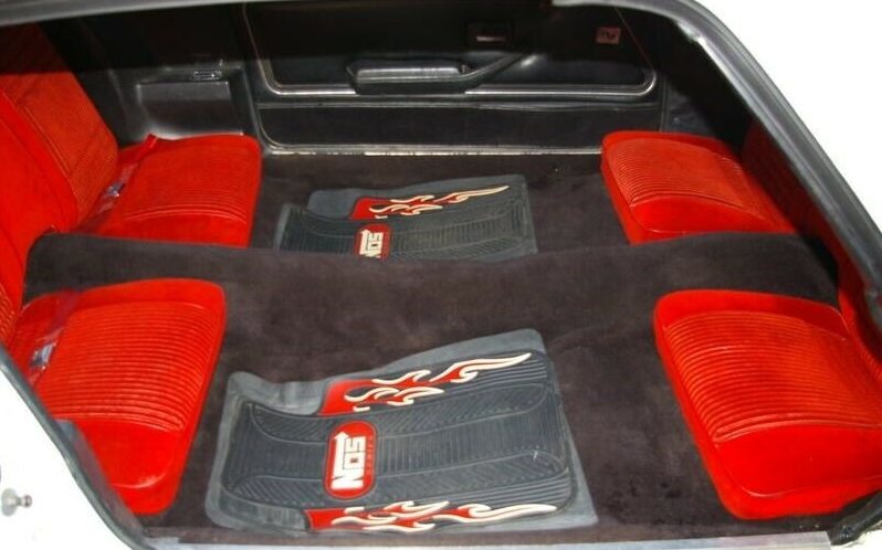 The exterior quality would seem to transcend the interior too, it appears to be comfortably well crafted. The issue is, while it is a stretch body, it’s only going to hold four partiers. It seems doubtful that there’s room for a refrigerator, bar, or makeshift debauchery of any sort. But it does make for a cozy, close setting with three of your closest friends. I suppose you could also put one of your not so close friends upfront with the driver but there are no images of the command center so we’ll have to assume that it is standard Trans Am. The floor mats are a curious touch, NOS? talk about a non-sequitur.