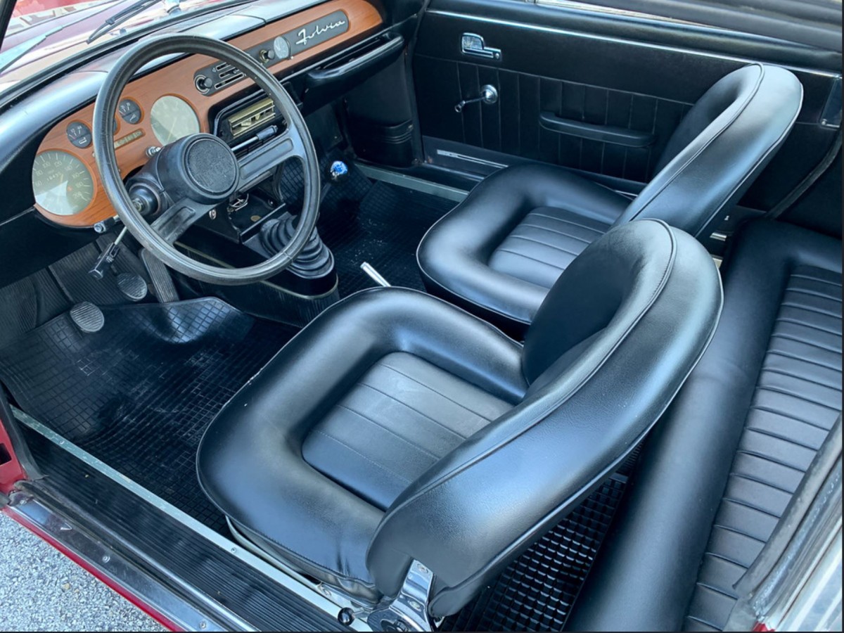Italian manufacturers have developed a reputation for marching to the beat of a different drummer, and nowhere is this more evident than when you lift the hood on this Fulvia. It is no surprise to find that a car that is this diminutive should be home to a 4-cylinder engine. What makes this so unusual is the configuration of this particular engine. It is a V4, so it still doesn’t seem that groundbreaking. However, with a “vee” angle of a mere 13°, that makes it one of the narrowest in automotive history. In fact, the engine is so narrow that it is able to utilize a singles cylinder head to serve both banks of cylinders. This DOHC motor has a capacity of 1,298cc and produces 91hp. This power is fed to the front wheels via a 5-speed manual transmission. That all might not sound like a recipe for excitement, but with an overall weight of 2,050lbs, the Fulvia is able to produce some surprising straight-line performance. In fact, it is capable of despatching the ¼ mile in 18.3 seconds. I openly admit that this is nowhere near muscle car territory, but for a car with such a tiny engine, it still looks very respectable. The Lancia appears to be in sound mechanical health, with the owner saying that it moves pretty quickly. He also supplies a walkaround video which I have included at the bottom of this article. Not only do we get a good look at every aspect o the car, but we do get to hear and see the V4 at work. There is no doubt that it possesses a very distinctive engine note, but it does also sound very clean and strong.