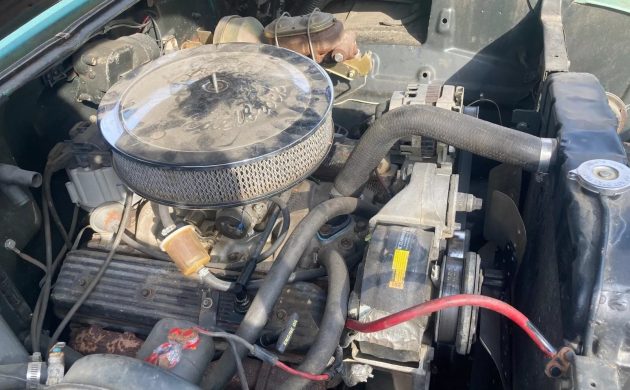 It would have been nice to get a few more details, but what’s stated to be a later model Chevy V8 is now under the hood, which is said to run strong. Other than it being automatic, no specifics are provided about the transmission either, but it is described as operating great. The seller claims that the car already runs and drives great, so hopefully, there’s little else to do soon regarding the drivetrain. A new battery will also be included, and I’d probably also ask for a wing nut to secure that Edelbrock air cleaner assembly.