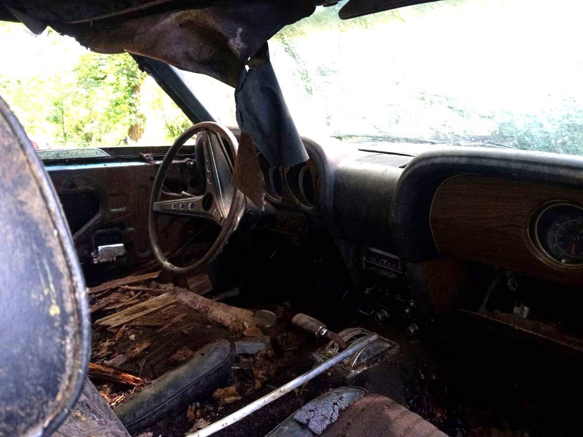 Whether there is a viable car here to restore or even much in the way of usable parts for another project is up for debate. There is more than one car stuck out in the sticks with no indication of what’s keeping the Mustang company. They may have been in a barn at one time that fell down (or blew down) around the autos years ago and it’s all been left to the elements. Would you take a chance on this “project”?