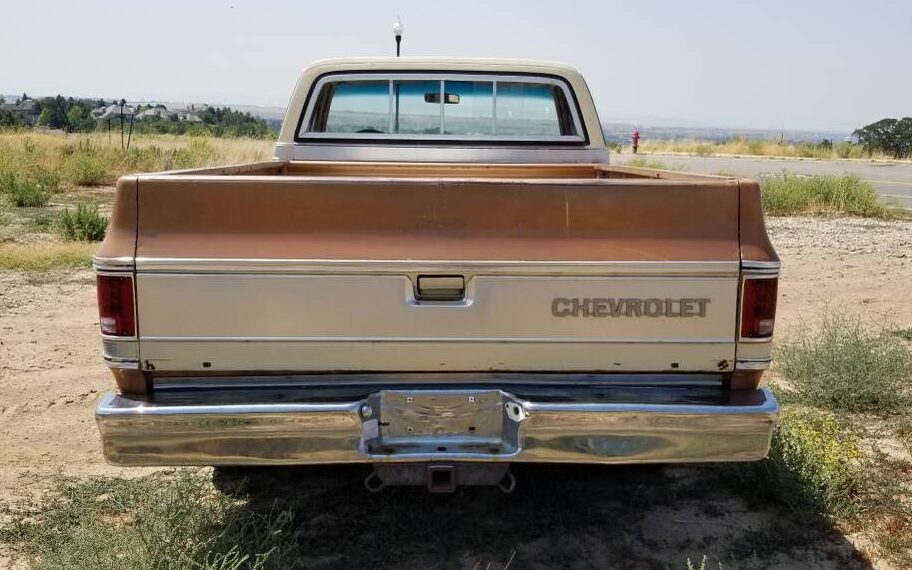 So the big news here is that this long bed is equipped with the “Trailer Special Package” and is utilizing Mr. Big, a 454 CI Turbo-Jet big-block engine, to provide the grunt. Other parts of the package include a Turbo-Hydramatic 400 automatic transmission, a 3.40:1 rear drive ratio, and heavy-duty suspension. Before getting too wound up about the powerplant, it’s helpful to remember that it only slings out a rather feeble 205 net HP, though the 335 net lb. feet of torque may help in the stump-pulling department (I still can’t get used to a Chevy big-block engine being painted corporate blue!). The seller adds, “This is a very nice running, great driving classic“. Additionally, the seller mentions that the rear springs, the brakes, and the shocks have all been replaced.