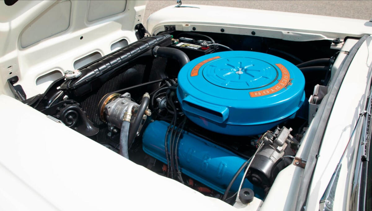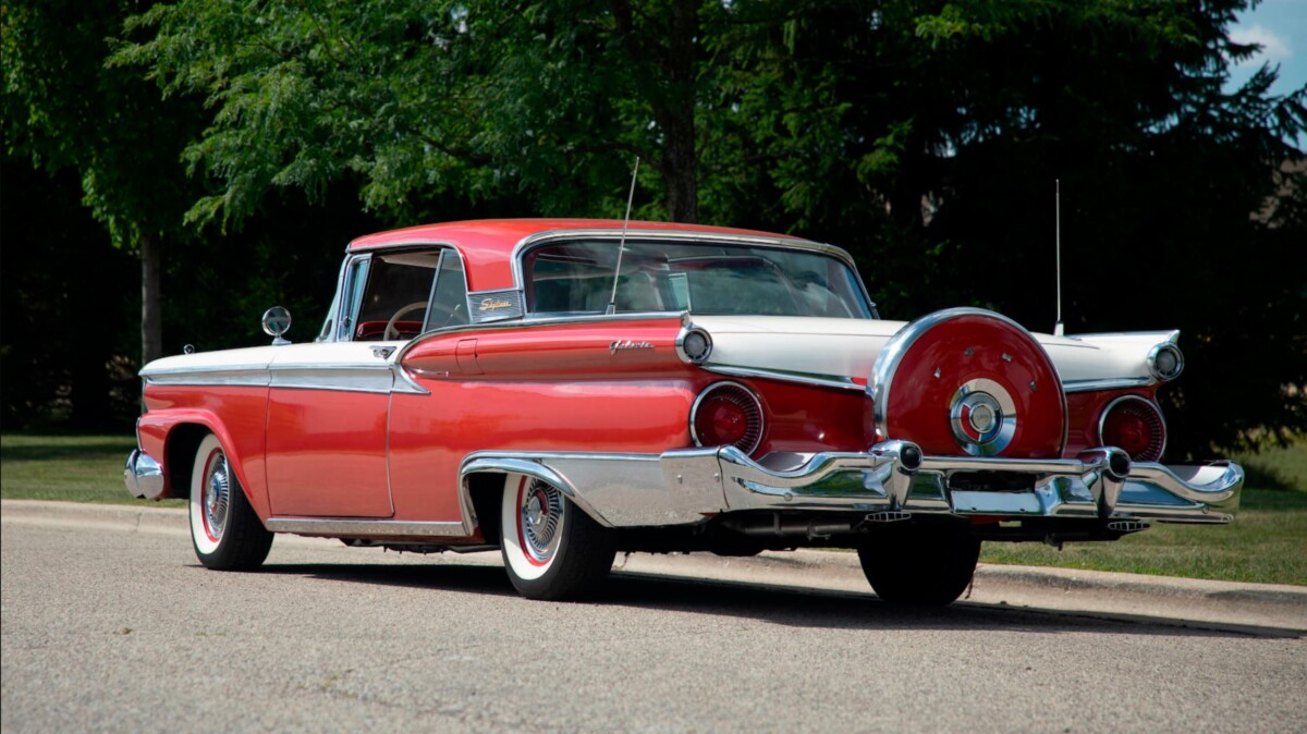 Ford introduced the Skyliner in 1957 as part of its Fairlane range. It changed the badging for 1959, with the car becoming the Fairlane 500 Galaxie Skyliner for the final year of production. The car proved a hit, with 12,915 buyers willing to hand over their hard-earned cash to park one in their driveway in 1959. The history of our feature car is unclear, but it is difficult to fault its presentation. Its Torch Red and Colonial White paint combination is stunning, with its cause helped by the impressive shine the paint holds. The seller supplies a good selection of photos, and there’s no evidence of significant flaws with the panels or paint. I can’t spot any rust issues, and the fact it remains garage-kept suggests there are no problems to cause the new owner sleepless nights. The defining feature of the Skyliner is its retractable Hardtop, which the seller says works perfectly. The car also features a Continental Kit, which is a practical consideration. The retractable top eats significantly into available trunk space, leaving little room for luggage or a spare tire. Therefore, mounting the spare on the back frees valuable room. The chrome and glass are spotless, and the wide whitewall tires add the perfect finishing touch to the exterior.