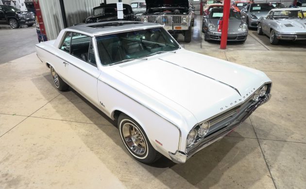 As would prove the case with Ford’s Mustang, Pontiac caught the opposition unaware when it unveiled the GTO. The competition was soon scrambling to join the muscle car party, including marques within the General Motors empire. Oldsmobile introduced the 4-4-2 in 1964, with the model designation said to represent its key features: a four-barrel carburetor, a four-speed manual transmission, and a dual exhaust. This first-year example will turn heads, courtesy of its Provincial White paint and contrasting Black vinyl top. The wheels and glass sunroof appear to be later additions. Otherwise, this classic is essentially as it left the factory. The seller provides an excellent selection of close-up images, and while they reveal minor cosmetic imperfections, the vehicle still presents extremely well as a driver-grade classic. The comprehensive underside shots confirm that this gem is rust-free, and with the trim and tinted glass in good condition, things look extremely positive to this point.