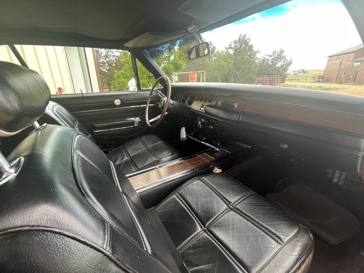 An amazing find, Mr. Dixon, but I must correct you on one thing. The front seats on a ’69 SE came standard w/ leather facings; vinyl sides and back. The rear seat was all vinyl. And these definately look like leather due to the very mild creasing….my brother had the same car, triple black, 440, stripe delete, automatic and loaded with power windows, am-fm radio, Air cond, and 6 (or maybe 8?) way manual drivers seat…wish I had that car! Anyways great find and a MAGNIFICENT car!!