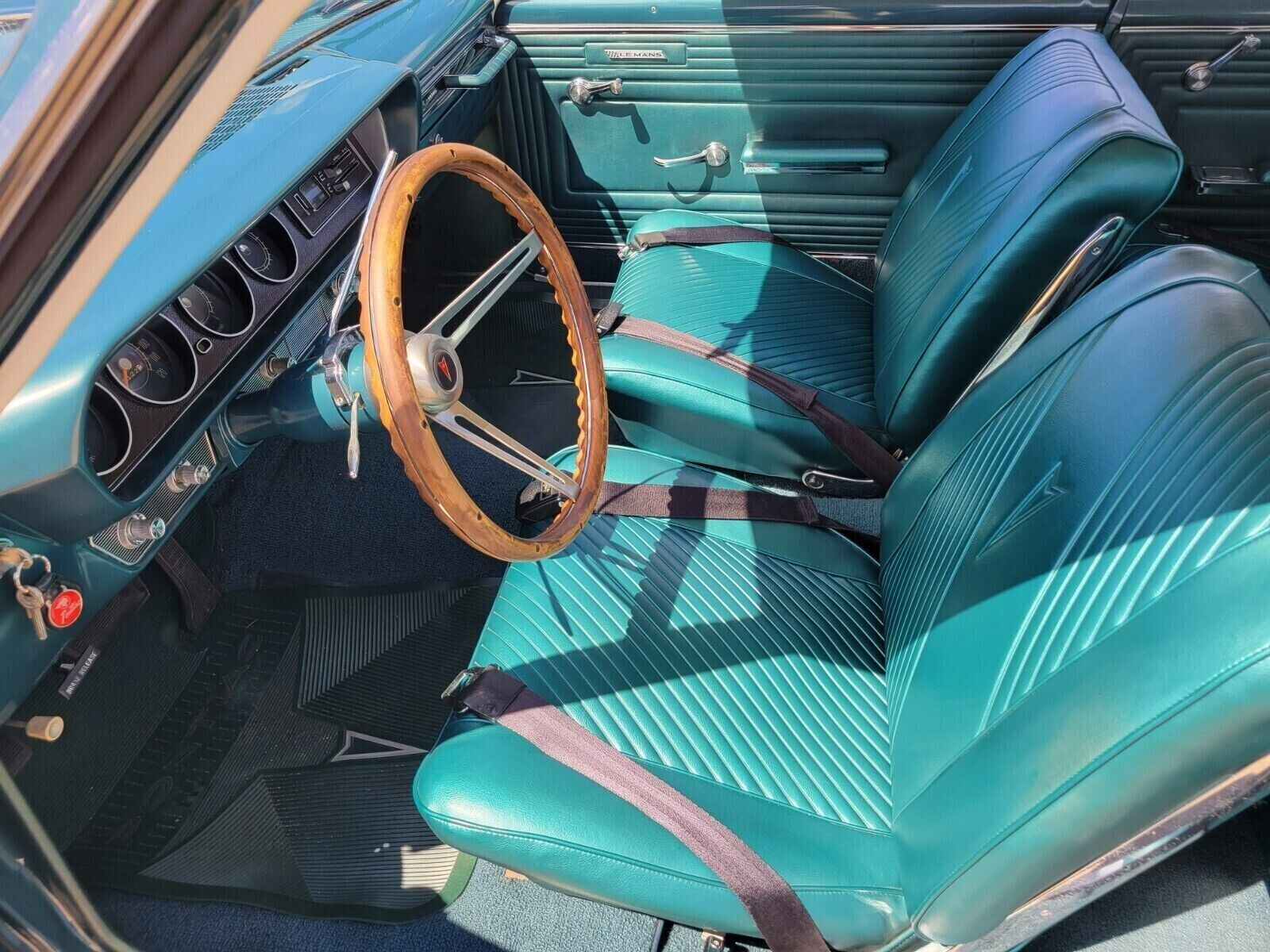 One aspect of classics from this era that I always appreciate is their interior trim presentation and combination. This was a time when manufacturers were adventurous, and you rarely saw a car with a Gray interior. This Pontiac is trimmed in Dark Metallic Aqua, and there is little to criticize about its condition or presentation. It features a different wheel and an AM/FM radio, but they are the only aftermarket additions. The upholstered surfaces are free from wear and physical damage, with only some slight discoloring on the outer edge of the driver’s seat to prevent perfection. The back seat is in as-new condition, the carpet is excellent, and the dash, pad, and headliner are immaculate. Taking this Le Mans to a show or a Cars & Coffee in its current state wouldn’t cause the new owner to feel shame.