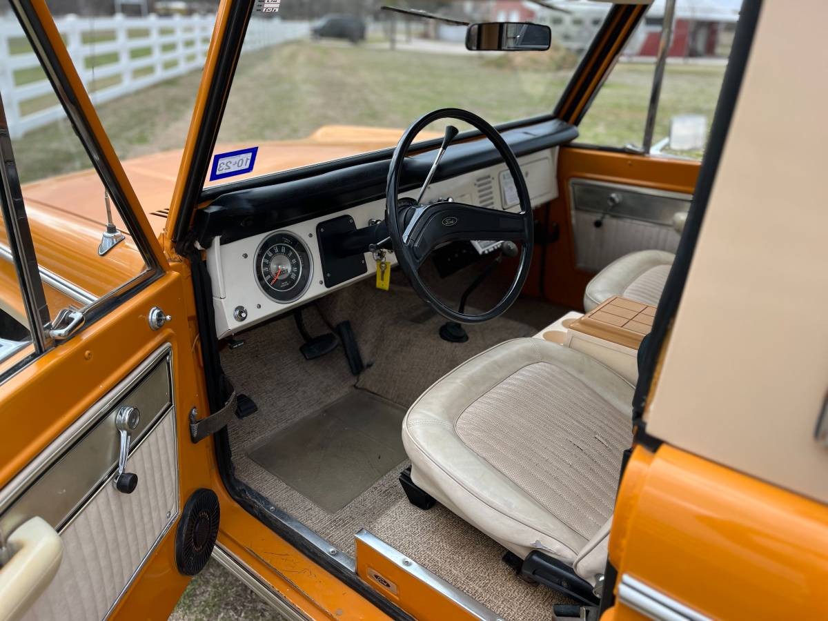 This Bronco’s interior is almost as original and impressive as its exterior. Someone has fitted an underdash cassette player that would be a doddle to remove, although their decision to cut the speakers into the door steel was less clever. That’s a shame because the fact that they didn’t locate the speakers in the same spot on either side provides a rather weird feel. Reversing that change is possible and is the approach that I would probably adopt. The Parchment vinyl trim exhibits minor wear and fading, and there are a couple of holes developing in the back seat upper edge. However, a set of slipcovers would hide any issues and provide protection from future deterioration. The rest of the interior looks great for a vehicle of this type and age, with the dash housing the factory radio.