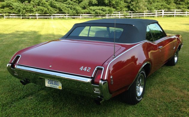 Oldsmobile’s Second Generation 442 range landed on showroom floors for the 1968 model year. The latest offering featured radically different styling that bore little resemblance to its predecessor, but with record sales of over 33,000 vehicles, it was warmly accepted by the buying public. This Convertible left the line in 1969 and has a known history. The seller is the fourth owner and states that the odometer reading of 68,000 miles is original. It is unclear when it underwent its rotisserie restoration, but the overall presentation makes it unsurprising that it has accumulated show trophies. The builder massaged the panels until they were laser-straight, confirmed that there was no rust, and applied a coat of the car’s correct Crimson Red. The paint shines like a mirror, appearing to be flawless. The contrasting Black power top fits as tight as a drum, and the glass is crystal clear. With seemingly perfect chrome and Super Stock II wheels, this Olds makes a strong first impression.