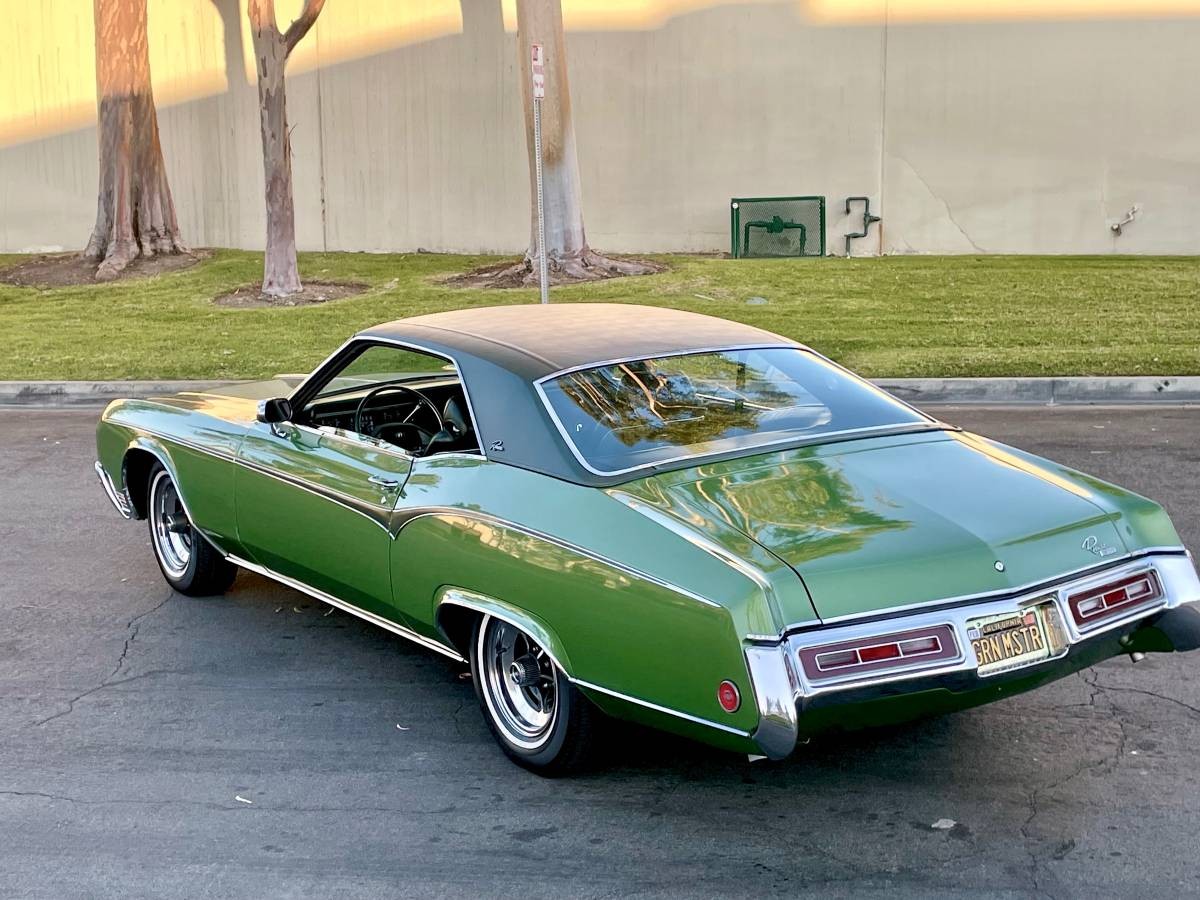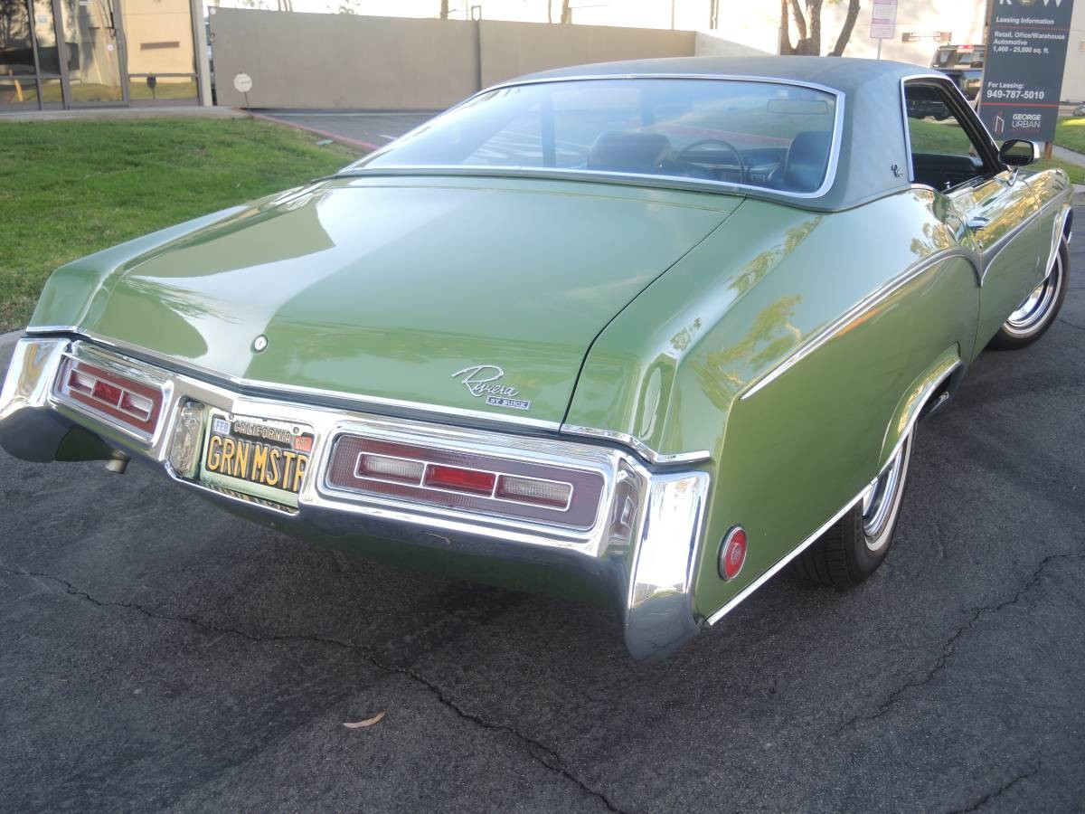 I had a ’70 Riviera in a slightly darker green with the green vinyl roof & black interior.