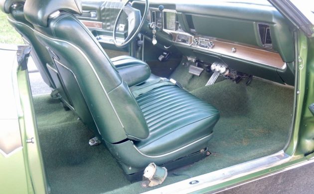 This Riviera is consistent because while the interior isn’t perfect, its condition is consistent with what could be considered a high-end survivor. There are scuff marks on a couple of plastic pieces and an under-dash gauge cluster. Otherwise, it is as it left the factory. The Dark Green vinyl trim is in good order, the pad isn’t cracked, and there is no evidence of UV damage. The only other flaw worth noting is scratches on the steering column that were obviously inflicted by the keys hanging in the ignition. The Buick’s luxury credentials are further enhanced by the air conditioning, power windows, a remote driver’s mirror, and an AM radio.