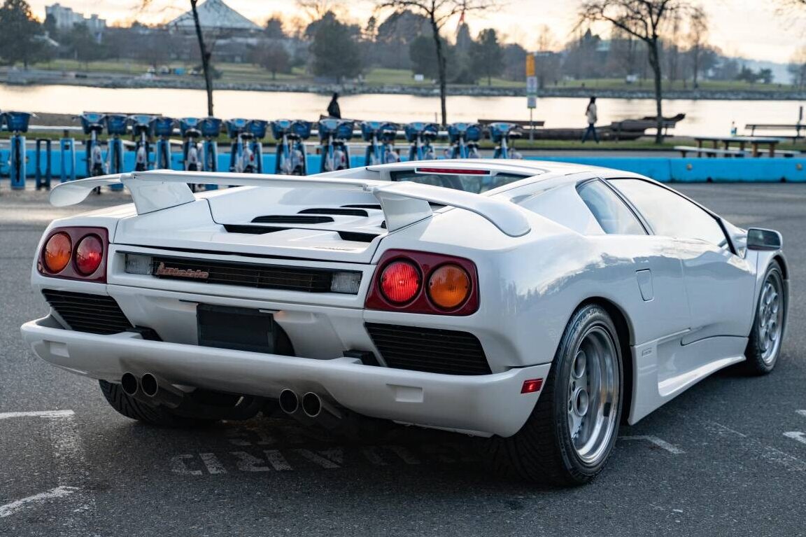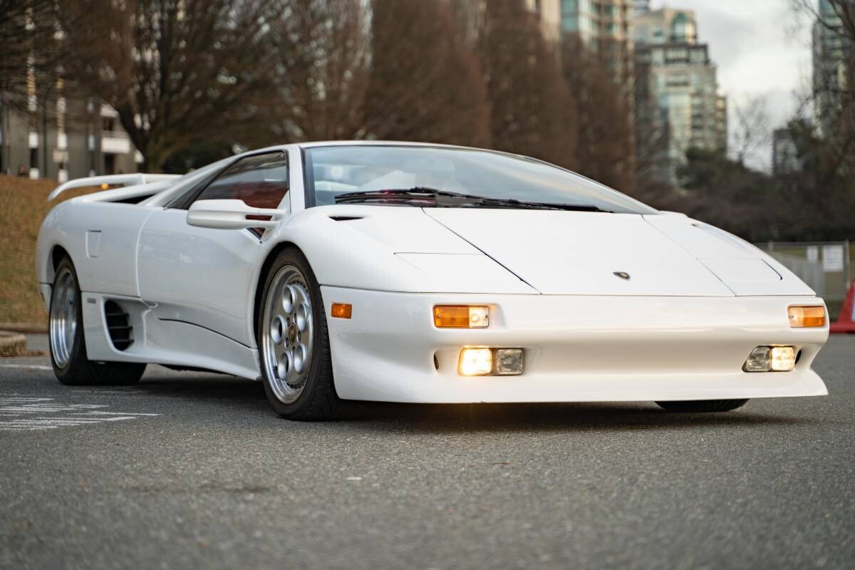 The Diablo’s design was a collaborative effort. Marcello Gandini penned the initial design, adding it to his portfolio that included the Countach, the Miura, the Alfa Romeo Montreal, and more humble models like the Renault 5 Turbo. The final design was locked in by Tom Gale from Chrysler, who added his flair to such vehicles as the 1992 Dodge Viper, the Plymouth Prowler, and Lee Iacocca’s beloved K-Car range. It features the low and swooping lines readily associated with the brand, along with Gandini’s iconic scissor doors first seen on the Countach. The original owner ordered this car in Impact White, one of the company’s most conservative shades in that model year. However, it doesn’t make this Diablo any less imposing. It is hard to fault its presentation, with the paint shining beautifully, the plastic and glass looking flawless, and the enormous wheels free from stains and marks. The seller describes it as being in showroom condition, and agreeing with that assessment is pretty easy.