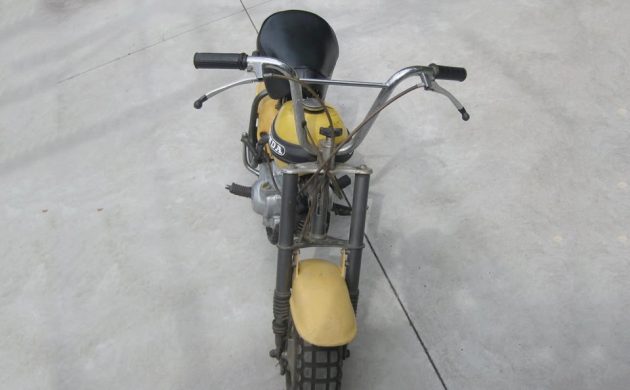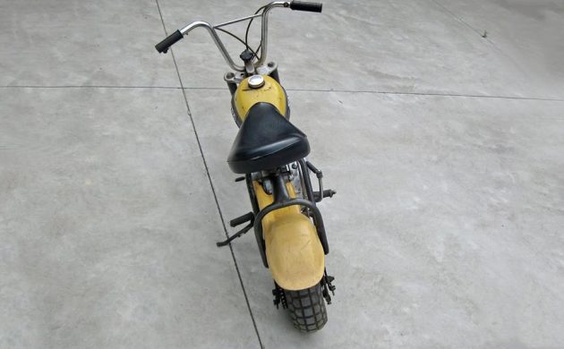 I prefer motorcycles with a headlight and taillight, but that’s just me. This is somewhat mini-bike-like in not having either of those, but it does have a kick-starter rather than a pull-start, as most mini-bikes do. Honda made the QA50 until 1974 or 1975, and they’re a bit rarer to see than the more street-friendly (with lighting) Z50s. These bikes are strictly for off-road use only, but even at 6′-5″ tall, I’d ride the heck out of this thing on a gravel trail through the woods. Or, down Main Street in Sturgis. The handlebars fold down so you can throw it in the trunk or the back of your pickup or SUV.
