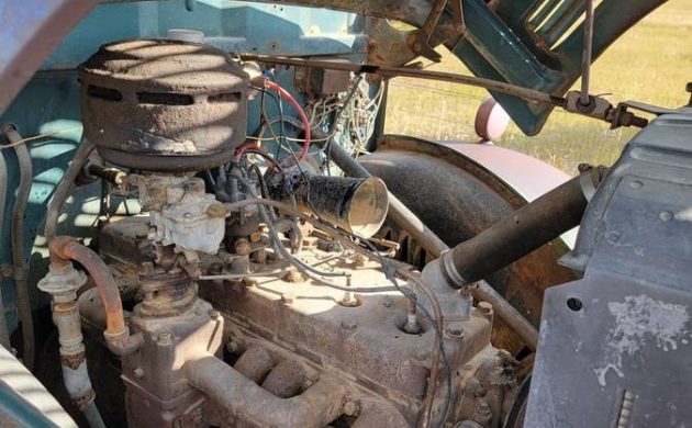 By 1948, REO was using its Gold Crown 245 cu. in. flathead six-cylinder engine, good for about 89 hp, backed by a Warner T97 four-speed manual with granny gear. Top speed was around 40-45 mph, depending on the rear axle. This one is a dually. It hasn’t run in a while, though the motor turns. The tires will hold air for a short time – maybe not long enough to unload the truck after hauling it home. Might be best to source new rubber right away.
