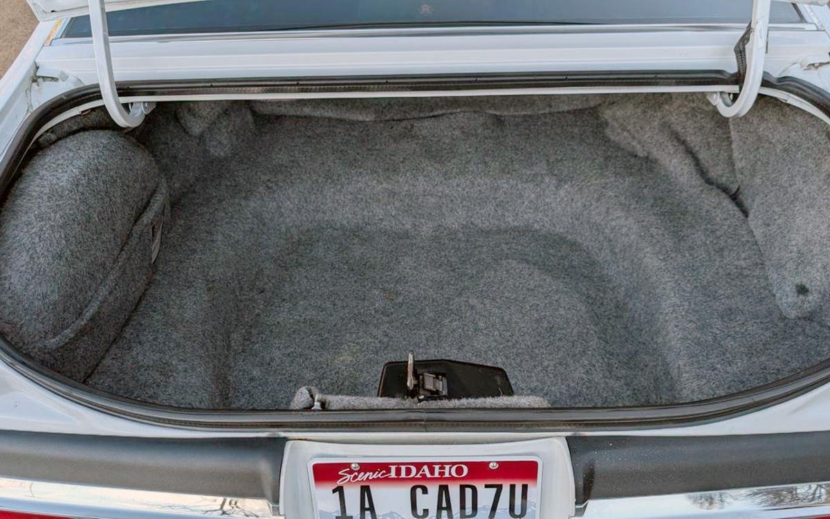 Lincoln made the Mark VII for model years 1984 through 1992, and it was known as the Continental Mark VII for 1984 and 1985. Then, the Continental name went away, and it became the Lincoln Mark VII. Whatever the name, these are still very nice cars. Here’s what the trunk looks like inside. I thought for sure there would be a spare tire on the inside, where the indent is shown on the trunk lid (kidding).
