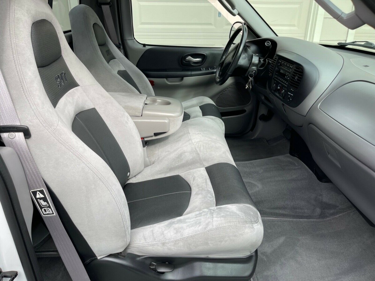 I love this era of the Lightning, as it returned with a vengeance after the first generation model’s extended hiatus from the marketplace. The Lightning came equipped with a raucous supercharged V8 and lowered suspension, along with unique bucket seats, wheels, and custom body enhancements, like a front air dam, side skirts, and rear apron behind the back wheels. The The seller’s truck looks very clean in Oxford White paint, and given many owners opted for the classic muscle car color of red, seeing one in a slightly sleepier shade is a nice change of pace. The seller claims the paint still feels new to the touch, and that it’s never been tracked or otherwise driven hard.