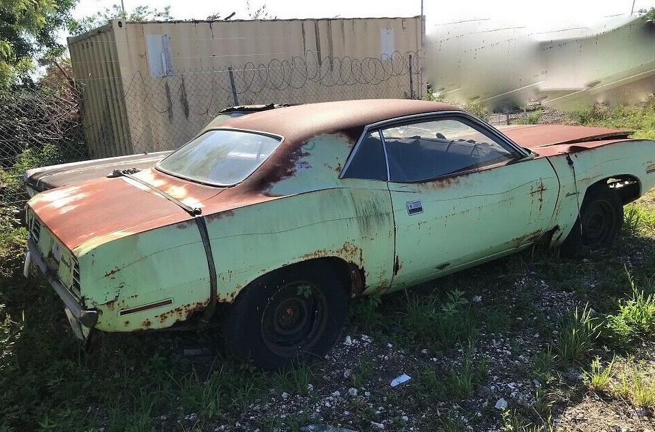 In 1970, the Plymouth Barracuda would finally get its own platform and lose the family resemblance to the grocery-getter Valiant. I always found these to be the most attractive of the pony cars, alongside its corporate cousin, the new Dodge Challenger. For your consideration is a ’70 Barracuda finished in what we believe is one of the “Hi-Impact” colors offered by Plymouth in the early ‘70s. To say this car has seen better days would be a huge overstatement, but judge for yourself. The car is sitting outside, perhaps behind a garage in Miami, Florida, and is available here on eBay where the seller is asking $10,000 or best offer.
