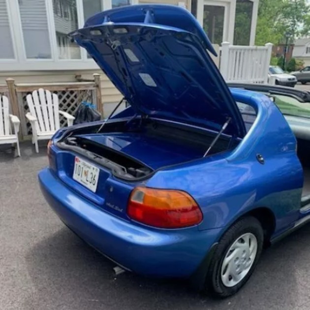 The little automobile presents well inside and out and we’re told it drives just fine. When not in use, the de Sol has stayed in the garage and comes with a custom cover to help keep away the dust. Besides the work the seller has done, we’re told the timing belt has less than 1,000 miles on it. Other than a few little scratches that have accumulated over the years, there is nothing cosmetic that the car needs. A maintenance log dating to 1995 comes with the sale and the Honda has an “Above Average” score on AutoCheck. If you like these little cars, this seems like a nice one for the upcoming summer months.