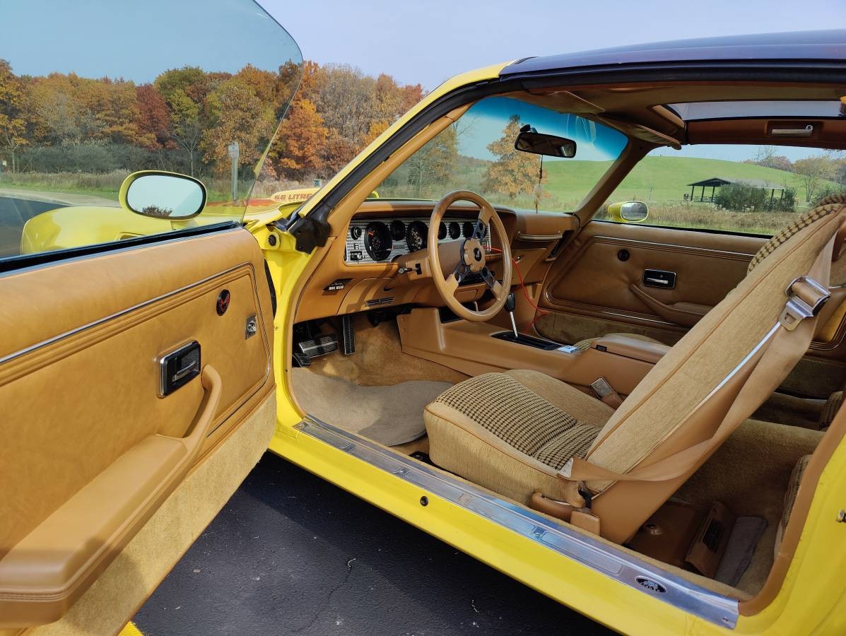 The car looks very clean with very little wear. The odometer reads just over 66,000 miles. The car is equipped with a beautiful tan deluxe interior which is evident by the hobnail cloth seats and upgraded door panels. Based on the black stopper on the door sill, the car looks like it received a Ziebart application at some point in its life. The seller states that the car is equipped with the factory WS6 suspension which improved the handling of the car. The T-tops are said to be scratch free and the tires are relatively new.