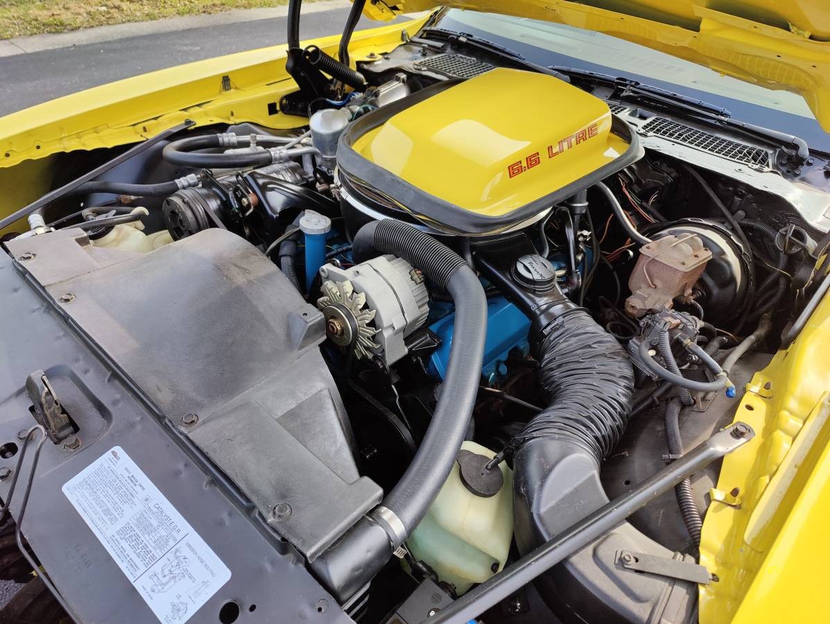 The car looks great in the pictures. It appears the front wheel lost its cap on the way to take pictures. The seller states that a 3:42 rear gear ratio was installed on the car. This should really help because the factory gearing on these cars ranged from 2:41 to 2:82 ratios. An aftermarket stereo has been added and the car was repainted in its original color recently. The buyer also discloses that the engine was rebuilt and looks fresh in the engine compartment.