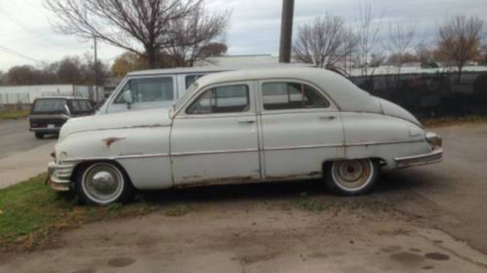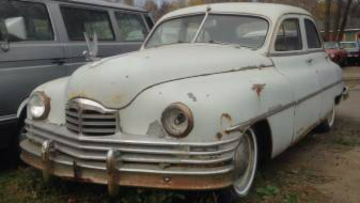 This was a car just like mine.( without the whitewalls) http://classiccardb.com/uploads/postfotos/1950-packard-4-door-sedan-1.jpg I’m sure many have grown tired of the story every time one of these pops up. I take a bit of offense to the ” lower level, post war Packards”. Packard never made a “lower level” car. Even the cheapest model, ( this car listed for almost $3,000 dollars, when a Ford or Dodge or Chevy, what I consider “lower level” cars, were half that) was still a high quality car. My car sat outside for 30 years, and was better than this. It had 41,000 miles on it. After unsticking the motor, which ran fine after it’s 30 year sleep, the automatic still worked, but was not the best. The 3 speed with O/D ( and electromatic clutch) was a much better setup, but this was one of the 1st cars with a fully automatic. A gutsy buy in 1950, it wasn’t cheap. $494 dollars in 1950, almost $5,000 today!! I can say without reservation, good luck with parts. Mechanical stuff should still be around ( this Kanter in NJ has everything) but body, trim stuff might be tough. I, at one time, had 3 parts cars,( I bought 1 whole car just to get the visor) so I had plenty of spares, but one by one, they got stripped an junked. Few remain. And everything is BIG and HEAVY ( the engine and trans weighs almost 800 lbs. by itself) so be ready for that. Bottom line, even the “cheapie Packard”, while not quite the fancy Packard’s of the 30’s, was still a Packard all the way. I loved my Packard.