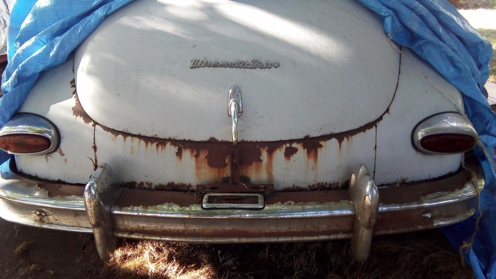 This car is equipped with the Ultramatic drive, which was the only fully automatic transmission ever developed in the US completely outside of the big three automakers. Amazingly, it had a lock up torque converter for efficiency, something that only really took off many years later. Sadly, the extensive rust the car is showing probably has something to do with that blue tarp you see folded back in this shot. We are told that this is the original paint, so at least there’s no rust hiding–but there’s plenty in plain sight.