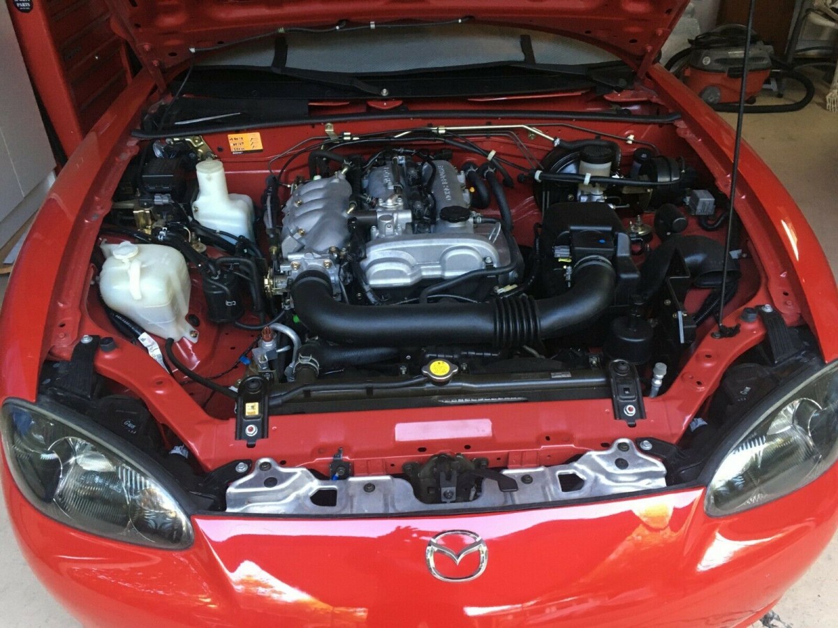 One of the most significant criticisms leveled at British sports cars from the 1960s is that they can sometimes be uncomfortable to drive. Because they generally only had modest engine powers, designers and builders were always searching for ways to pare weight from them. That meant that equipment levels were low, there were few luxury appointments, and even sound deadening material was minimal. Mazda wanted to give buyers something more for their money, so they created a well-equipped interior but didn’t add any unwanted weight. Many of the plastics are lightweight, but the materials themselves are of a higher quality than average. The company also employed some new techniques to construct components like the dash, which pruned away more weight. However, buyers still found themselves with a car that featured a couple of airbags, air conditioning, power windows, power locks, a tilt wheel, and a nice little radio and CD player. This car has all of those features, and the interior is hard to fault. There is no wear on the outer edges of the seats, nor on the carpet or wheel. The dash is spotless, while all of the plastic is free from deterioration. There have been no aftermarket additions, and the overall condition is indicative of a car that has been treated with care and respect.