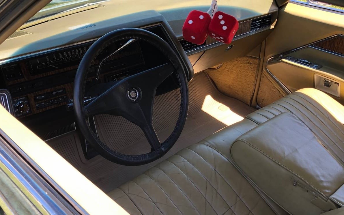 We only get to view a couple of interior pictures, which show things looking pretty much standard for a 1970 Eldorado, sans fuzzy dice!  The dash and instruments seem clean and nicely preserved for their age, with the front bench seat having only minimal wear.  This one’s clean inside and out, so if you’re looking for an early-seventies luxury car with plenty of extra glam, this 1970 Cadillac Eldorado Super Fly tribute might be right up your alley.  What are your thoughts here?