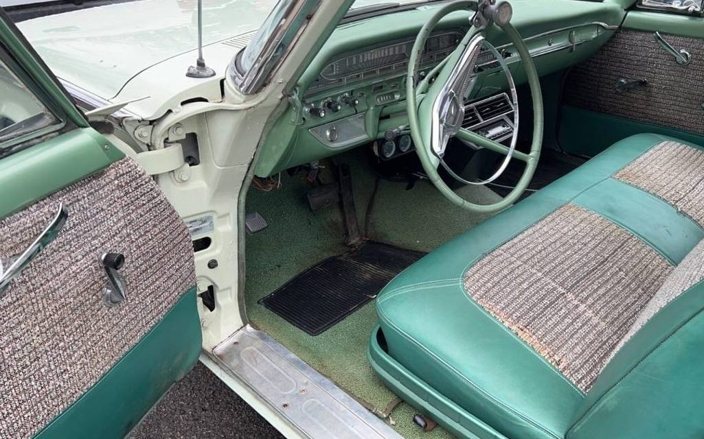 The Edsel has become a metaphor for so many things that have come to pass, and then quickly disappeared and its demise has been covered and theorized to death. All I know is that the ’58 was downright ugly and looked like an Oldsmobile sucking on a lemon. The worst visual effects were tamed a bit for ’59 and then in the “if you blinked, you would have missed it” 1960 Model year, we got a ’59 Pontiac nosepiece grafted onto a typical finned Detroit box, affixed with taillights that looked like they were boosted from a cheesy ’90s Korean economy sedan. All of that said, this very straight, clean Edsel shows really well. The listing is minimal in its description but the images portray a deep finish, a body unmarred by rust or damage, and strong chrome and stainless trim. The design of the B-pillar and door glass frame is thin enough that this sedan could be mistaken for a hardtop, but as stated earlier, the roofline of the hardtop is completely different. The only demerit that I’d give this Edsel is for the cheap-looking add-on chrome-plated fender skirts, a styling cue that can be easily undone if so desired by the next caretaker.