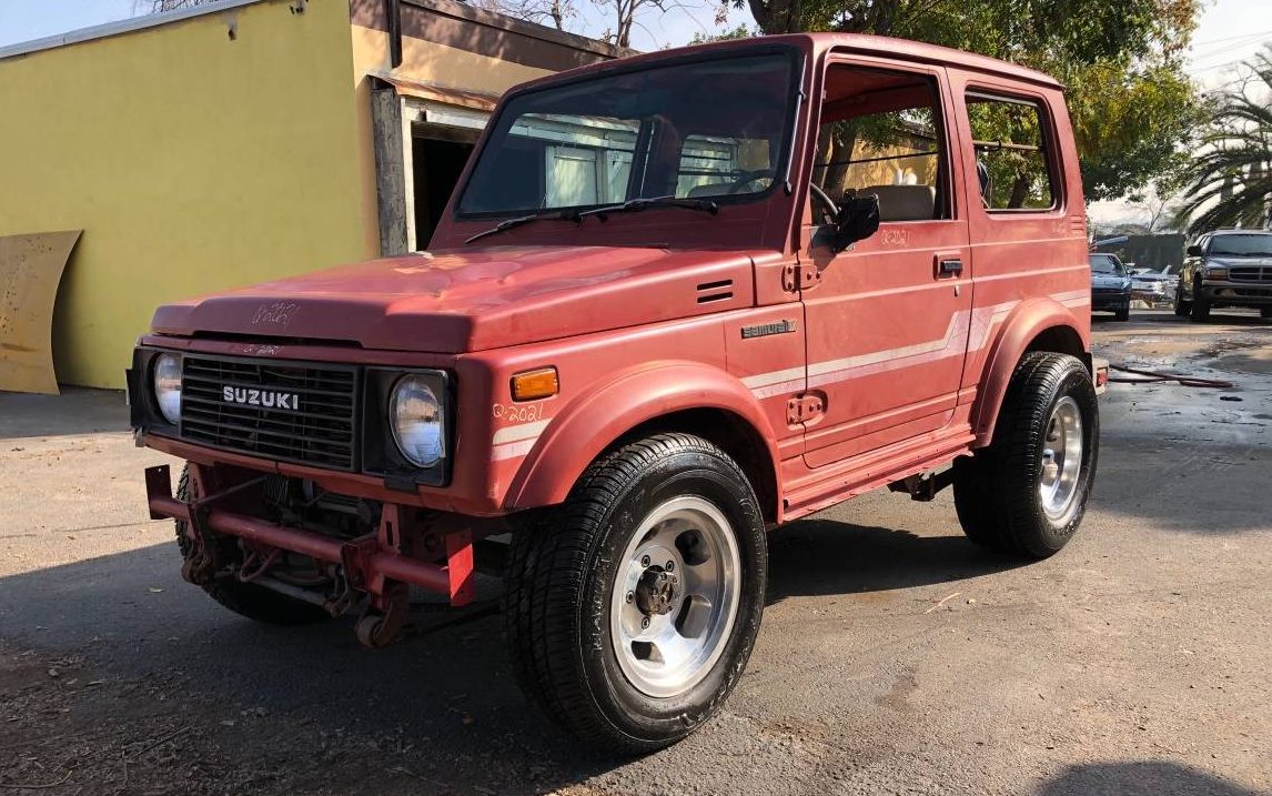 I had a pretty pristine 87 Samurai that I let go in 2009 that had 49,000 miles, still had original tires and spare and nary a scratch. Ran great. Convertible top, but my wife really felt is was a rollerskate with big tires. Just thought it was too unsafe. I got what I thought was an ungodly lot of money for it when an acquaintance paid $2400 for it. He recovered the seats in marine vinyl, put new wheels and tires on it and dropped in a 289 ford V8. I thought that was crazy and made the thing a difficult drive. It was wrecked within 6 months. Can’t imagine a car like this one that requires a bungy cord to keep the sides on when driving.