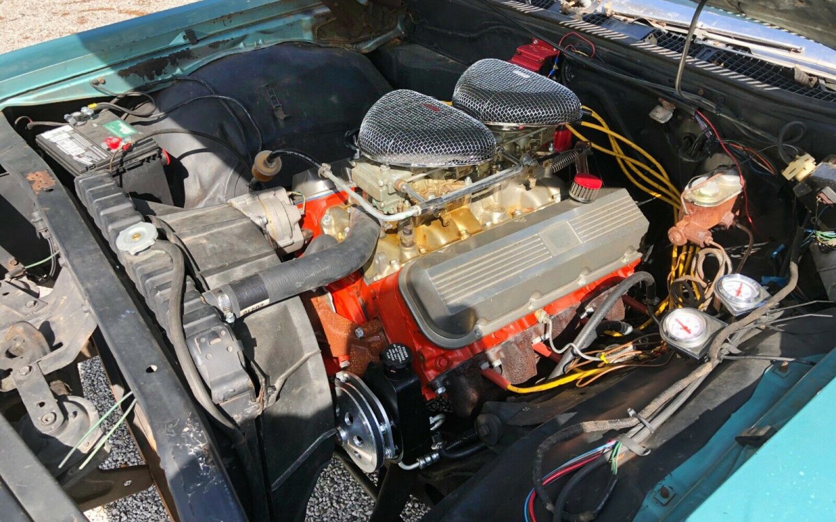 The big dealio with this sedan is this chunk of iron which the seller says is a Chevy 402 cubic-inch big block which was bored .030 over stock and has two thirsty 600 Holley carbs and a solid lifter cam. I can hear it idling now. And about that exhaust, it’s a new 3″ system, now I can really hear it! They don’t mention the horsepower, what’s your guess? This would be such a fun car to daily drive if a person could afford the gas. Have any of you done anything like this with an unassuming car?