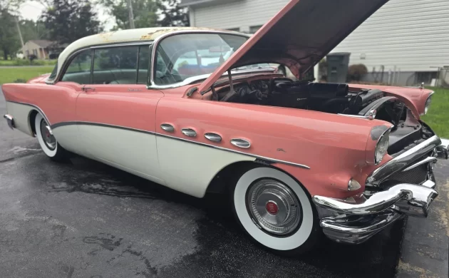 From Tae Bo to the Macarena, fads are fun, harmless ways to feel a sense of camaraderie in a sometimes isolated world. However, at some point, that Los Del Rio CD is just sitting on the shelf, and if you’ve fallen for a fad that takes up a whole garage, that bag you’re holding just got a whole lot heavier. Thus, coral/salmon paint came and went, and I can’t help feeling that it was a liability when trading in a car in 1958 or so. But time has given coral (Tahiti Coral and Dover White, in this case) the last laugh, as it’s now a midcentury period piece (come to think of it, Midcentury modern may be a fad), and this ’56 Buick Roadmaster would definitely look great parked in Palm Springs or in the driveway of a Frank Lloyd Wright house. If you wish Coral had never left, this Buick is for sale on eBay in Pottstown, Pennsylvania, with a high bid of $8,100 (and the seller says that he’ll add a Buy It Now option for serious parties).
