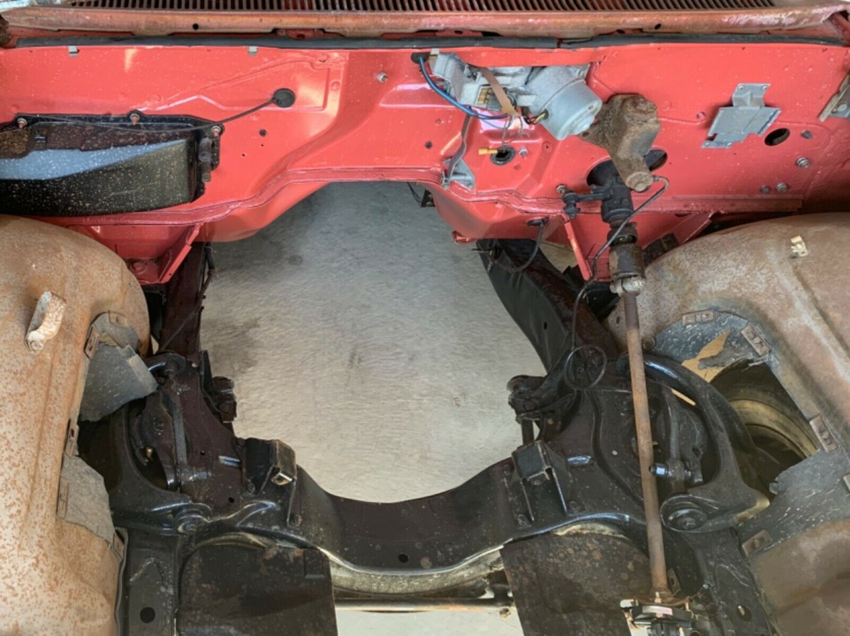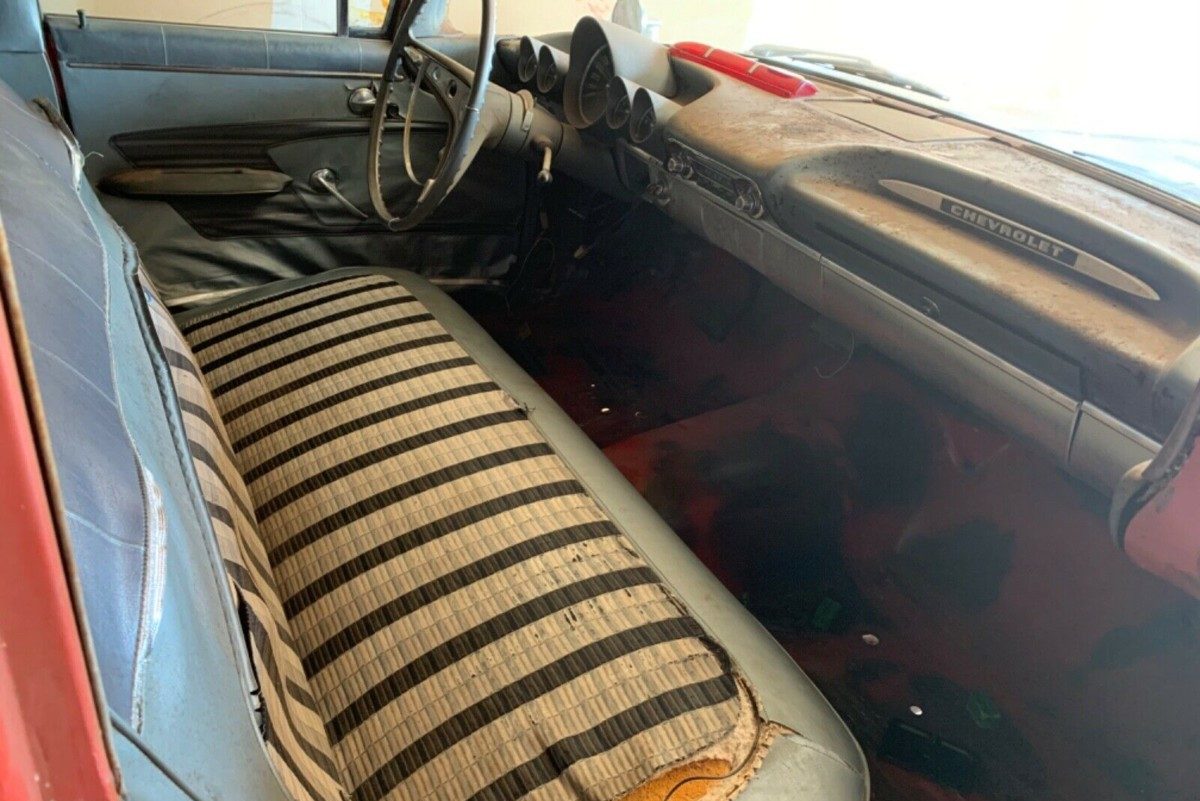 A rare `59 that has more going for it than against it. Complete interior pkgs. are available for these, so you could bring it back to the factory grey offering. I would source another 348 4bbl. & automatic and do a factory stock restoration. I know, I know…the temptation is there to do a resto-mod, but try to find another Nomad this solid. The frame/underside looks to have received some attention which helps alot. As long as the reserve isn’t ridiculous, this is an excellent basis for a full restoration!