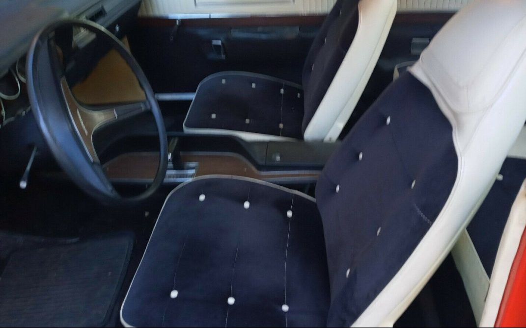 I have a knack for reviewing cars that have no included listing image of the engine and this Dodge is no exception. It’s said to be a 170 net HP, 400 CI V8 driving through a typical TorqueFlite three-speed automatic transmission. The seller adds, “Car will turn over and start with gas poured into carb but does not seem to be pumping gas by itself, Possibly Fuel Pump dried up, Or a rubber line got cracked or ruined sucking air from the newer Gas with 10% Alcohol“.