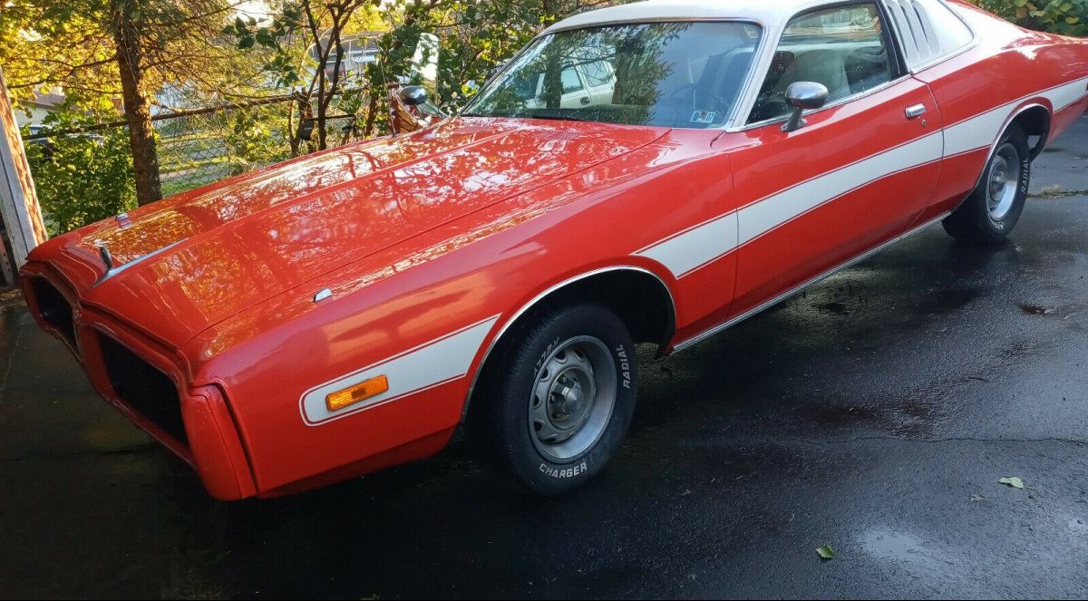 The seller of this 1973 Dodge Charger SE proclaims, “This Is Definitely NOT A ‘BARN FIND’ CAR“. Nevertheless, the description given does make this car sound like a barn find and it certainly is unique so I’d say it qualifies to be featured here on the site. This 75k mile muscle car has been parked for a while in Freeland, Pennsylvania, and is listed here on eBay where bidding is currently at $10k with no reserve!