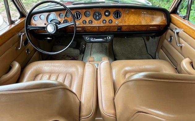 I’ve seen this before on RRs of similar vintage. The interior is all Connoly leather and burled walnut, and then a steering wheel that looks like it came out of a school bus.